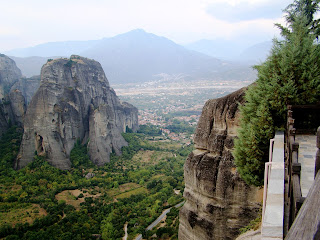 Ao chegarmos ao mosteiro encontramos este terraço que proporciona uma magnífica vista do vale arborizado abaixo.